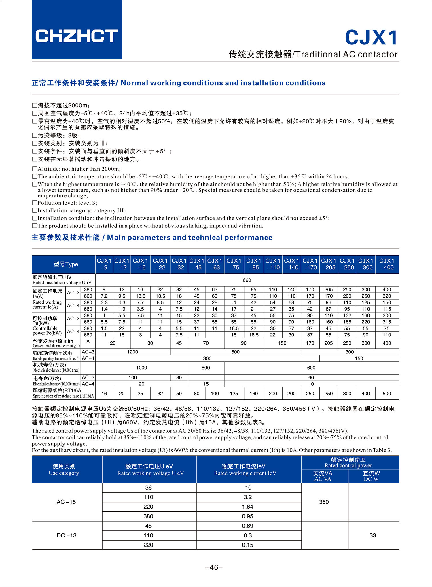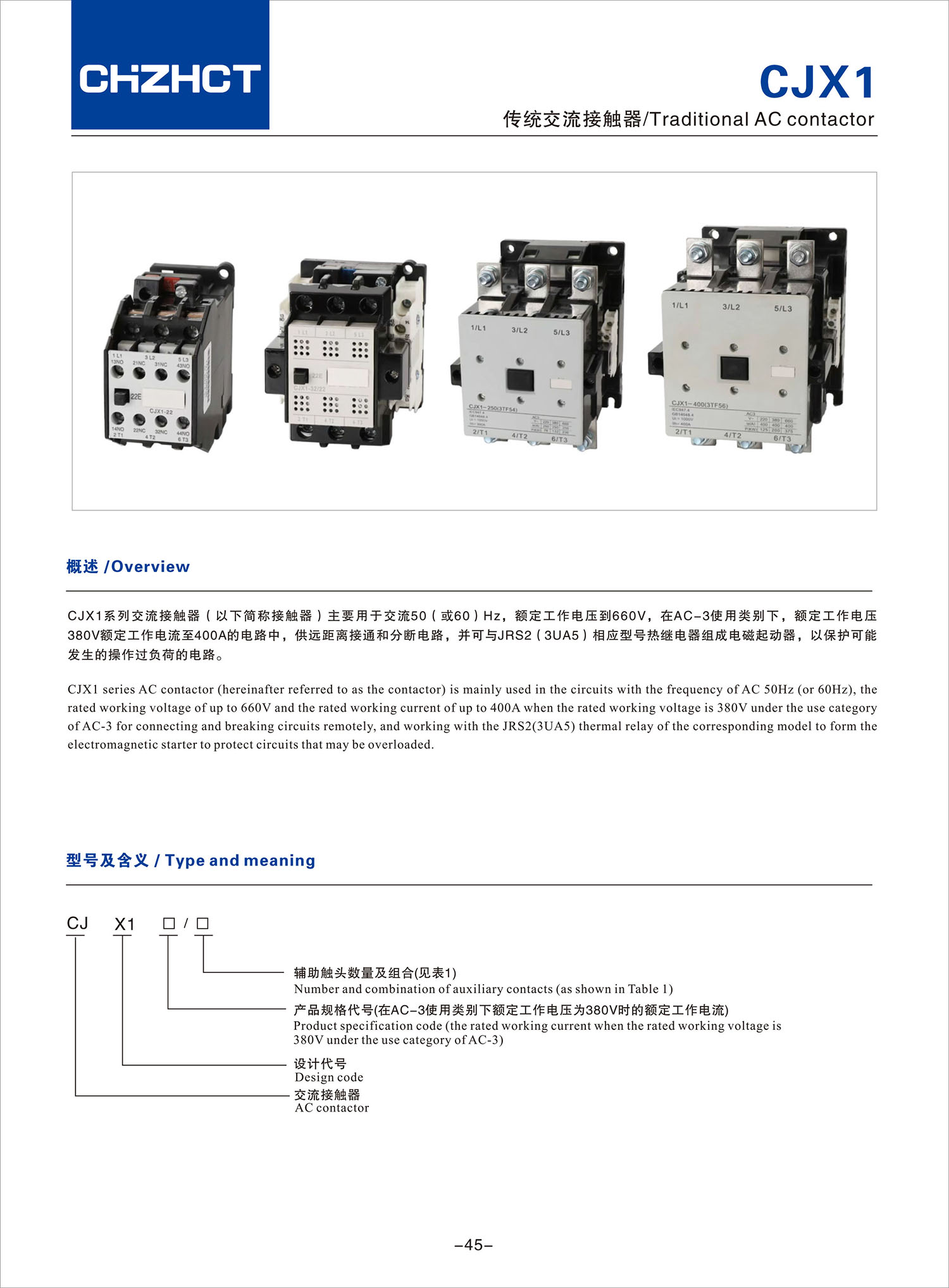 CJX1傳統(tǒng)交流接觸器產(chǎn)品說明書