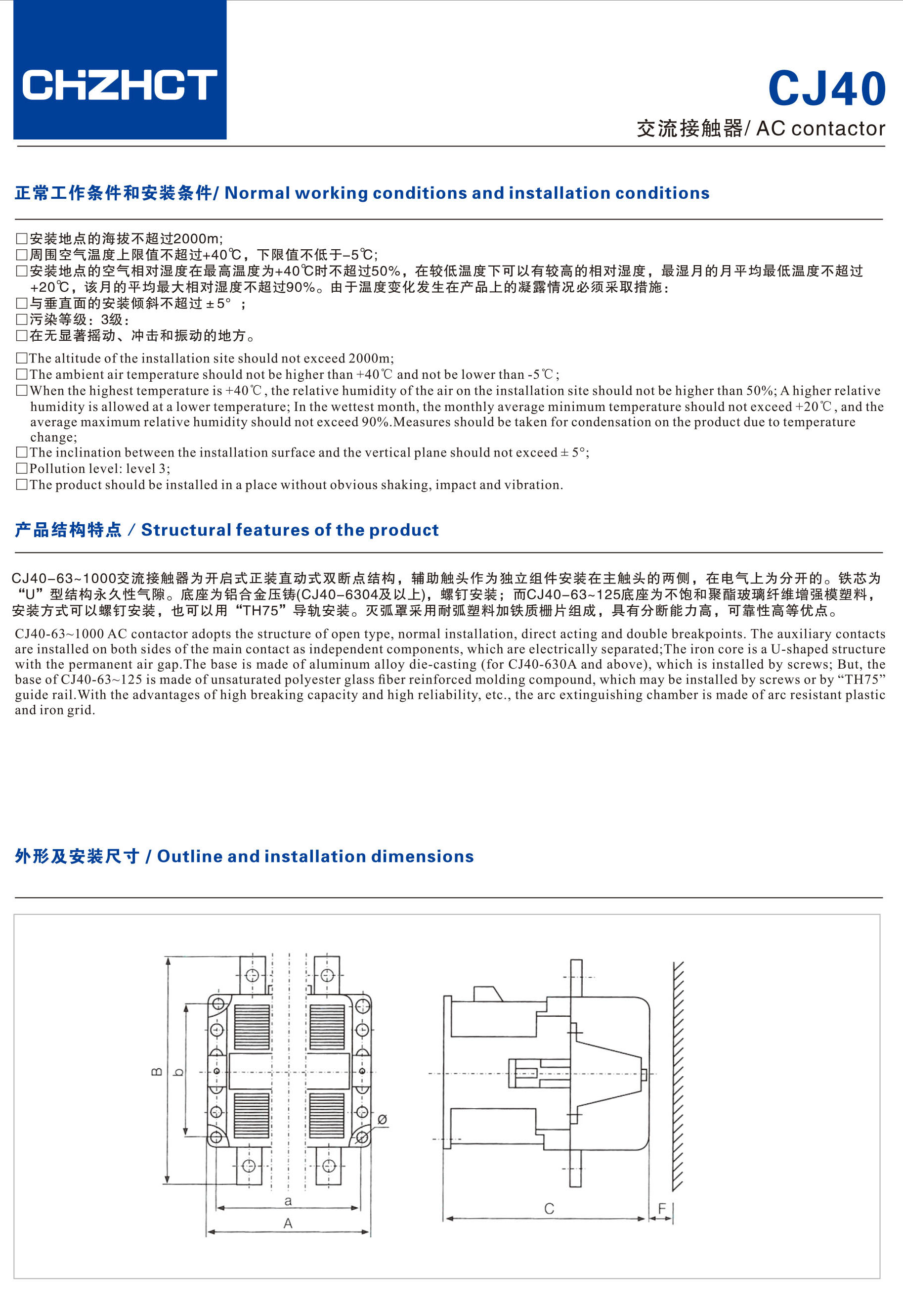 CJ40交流接觸器產(chǎn)品說明書