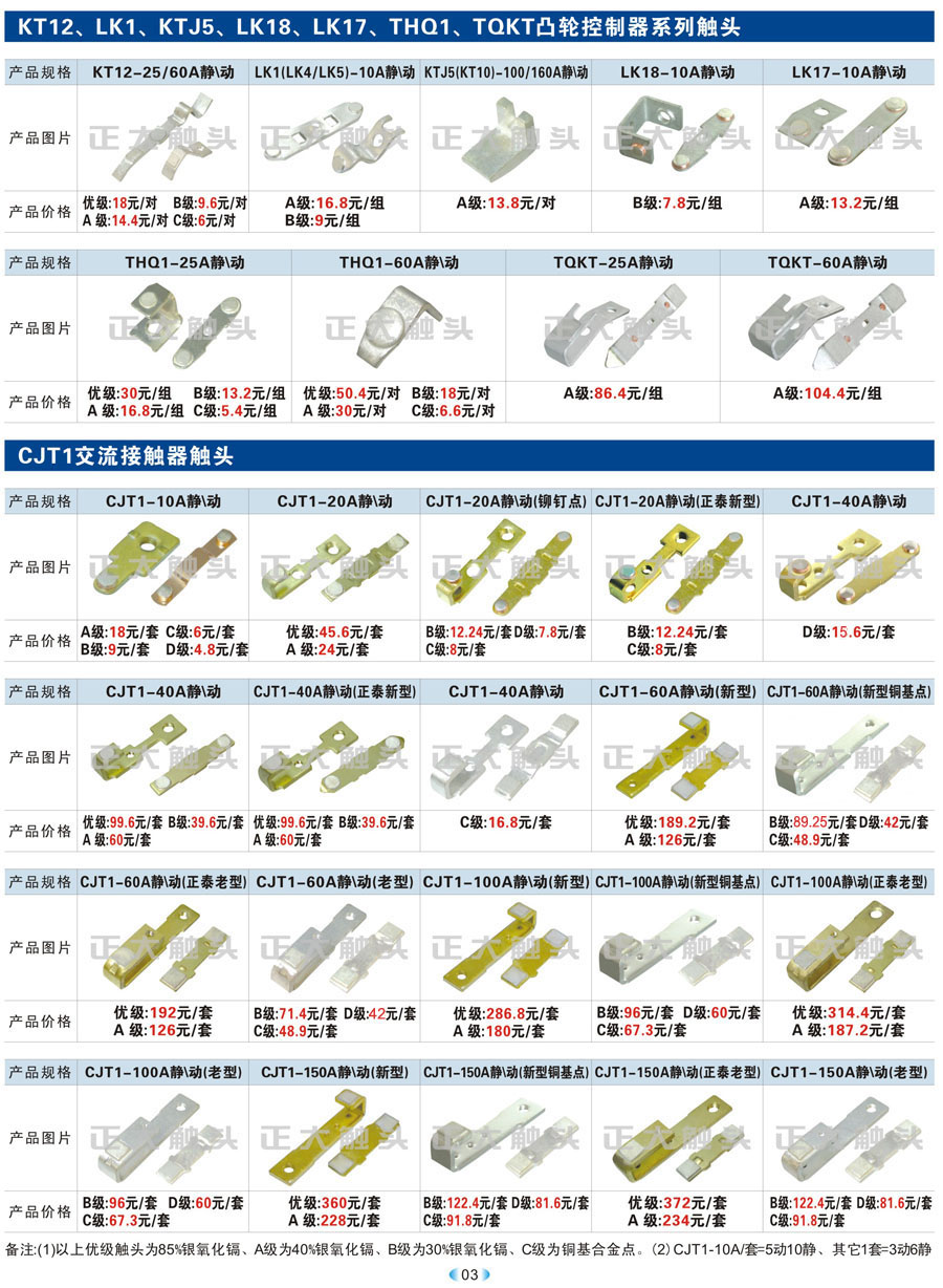 KT12、LK1、KTJ5、LK18、LK17、THQ1、TQKT凸輪控制器系列觸頭、CJT1交流接觸器觸頭