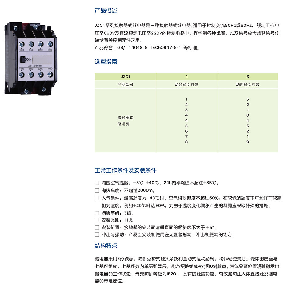 網(wǎng)站首頁(yè) > 產(chǎn)品中心 > 工業(yè)控制與保護(hù) > 繼電器 > 接觸式繼電器 > JZC1 系列接觸器式繼電器