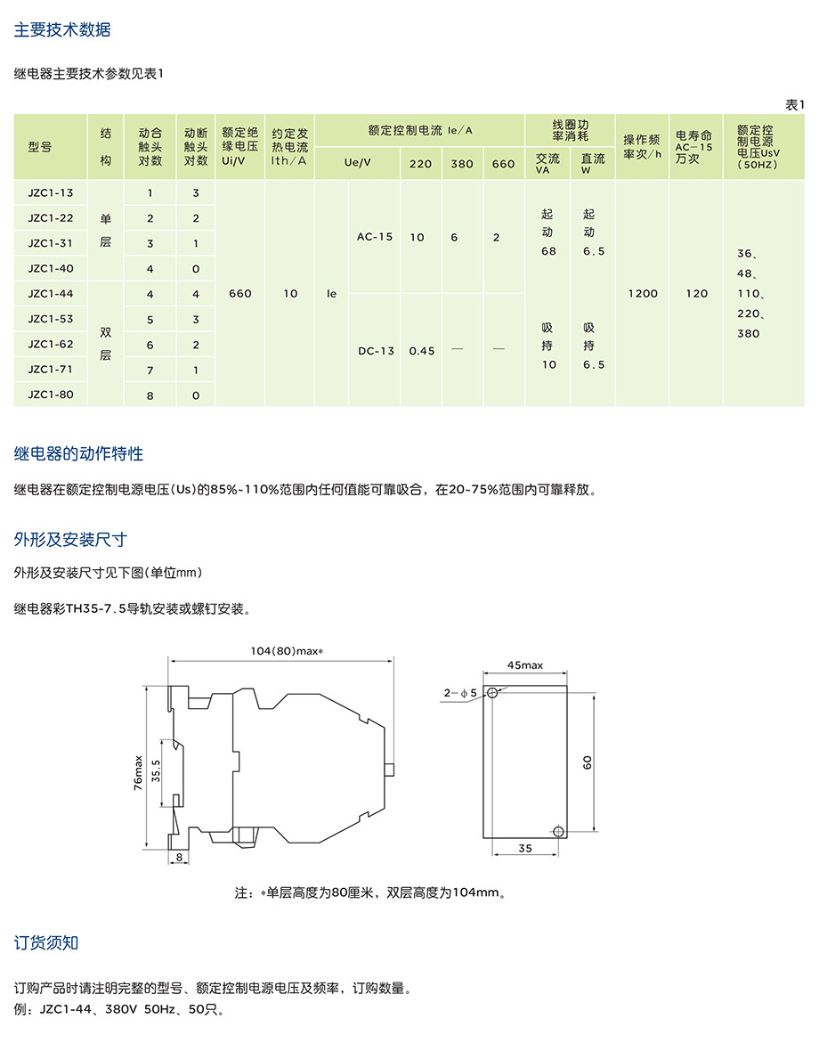 JZC1 系列接觸器式繼電器