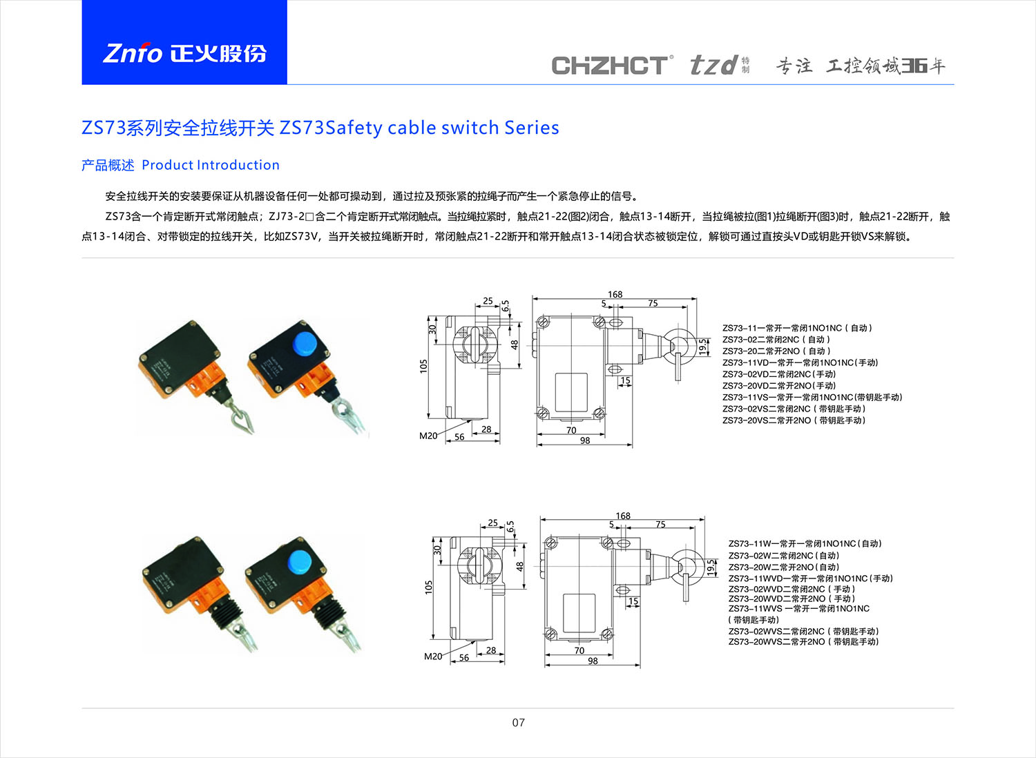 ZS73安全拉線開關(guān)產(chǎn)品說明書