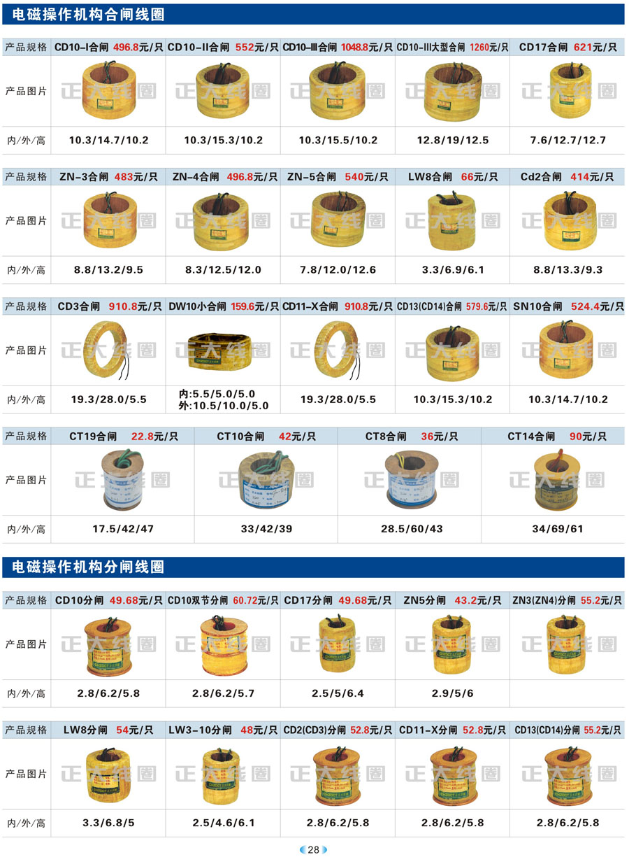 電磁操作機(jī)構(gòu)合閘線圈、電磁操作機(jī)構(gòu)分閘線圈