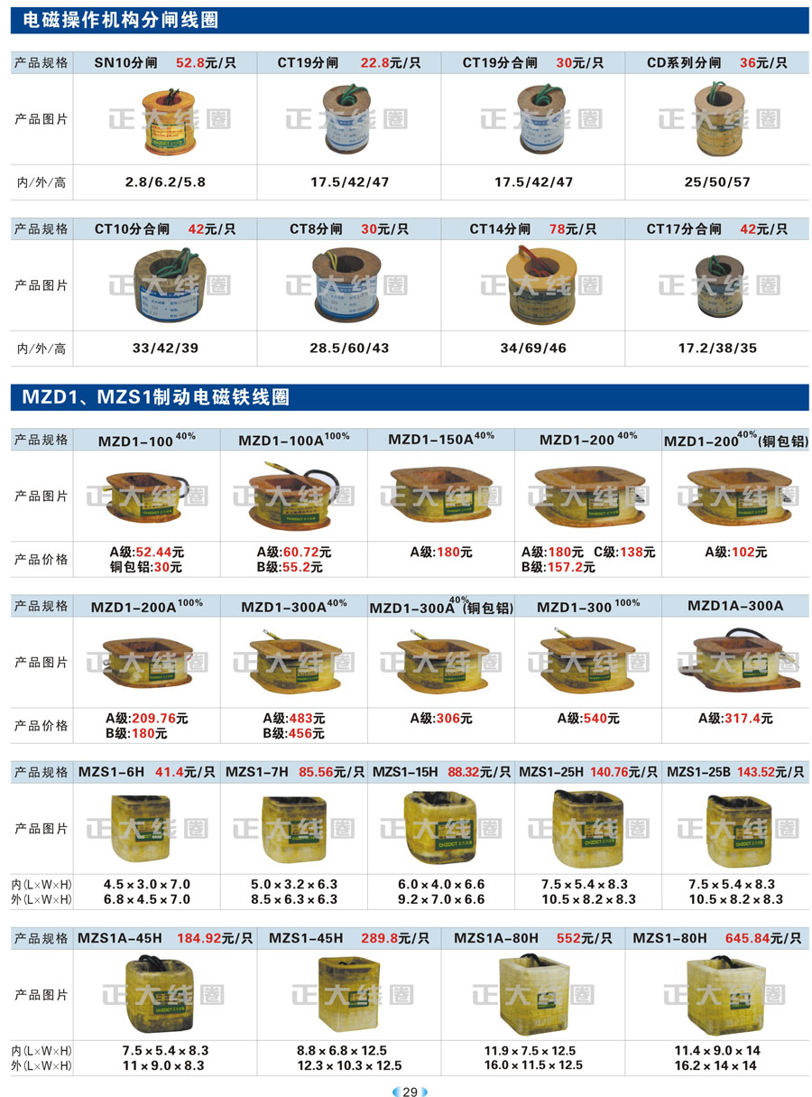 電磁操作機(jī)構(gòu)分閘線圈、MZD1、MZS1制動電磁鐵線圈