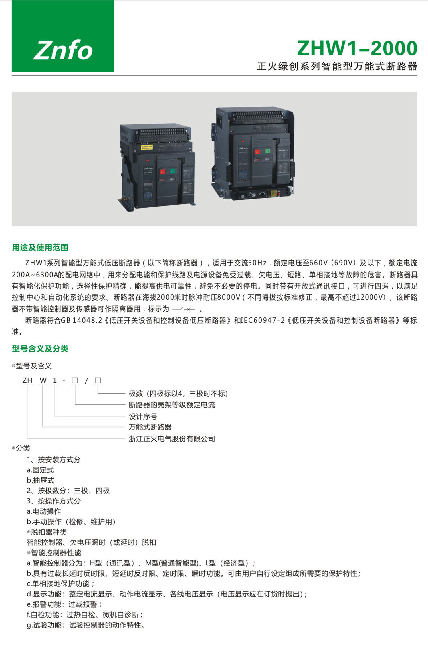ZHW1-2000系列智能型萬能式斷路器產(chǎn)品說明書