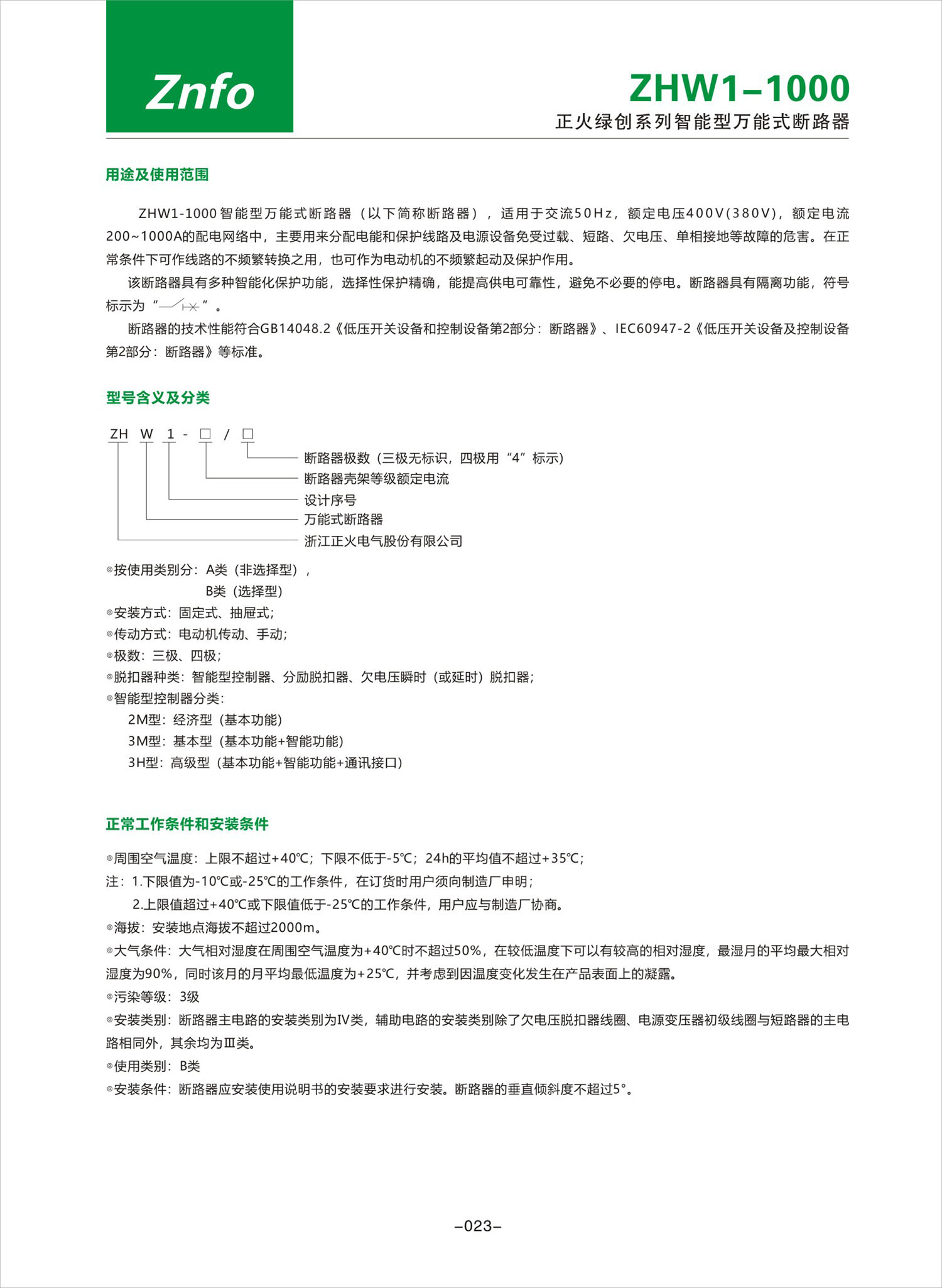 ZHW1-1000系列智能型萬能式斷路器產(chǎn)品說明書