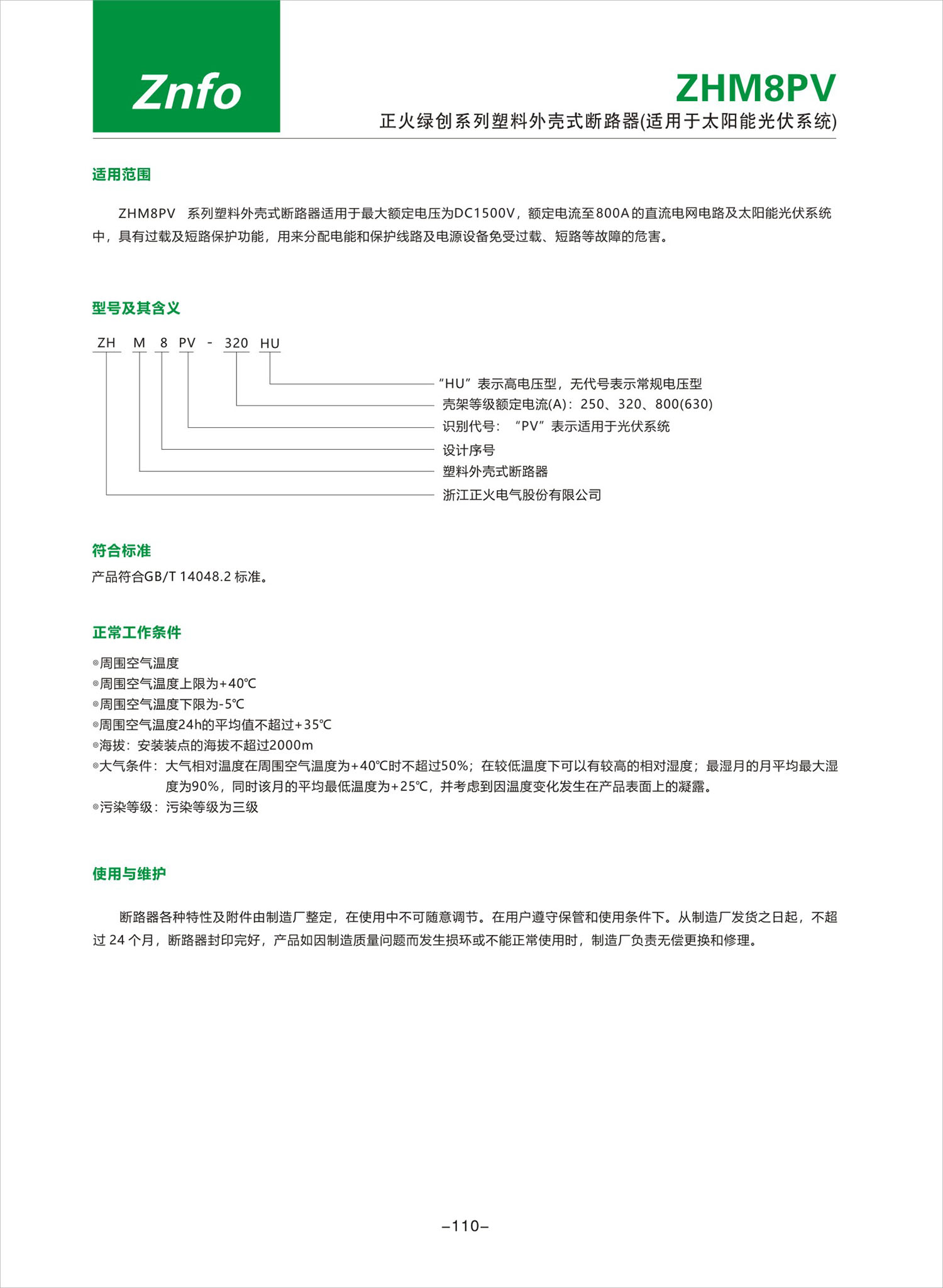 ZHM8PV系列塑料外殼式斷路器產(chǎn)品說明書