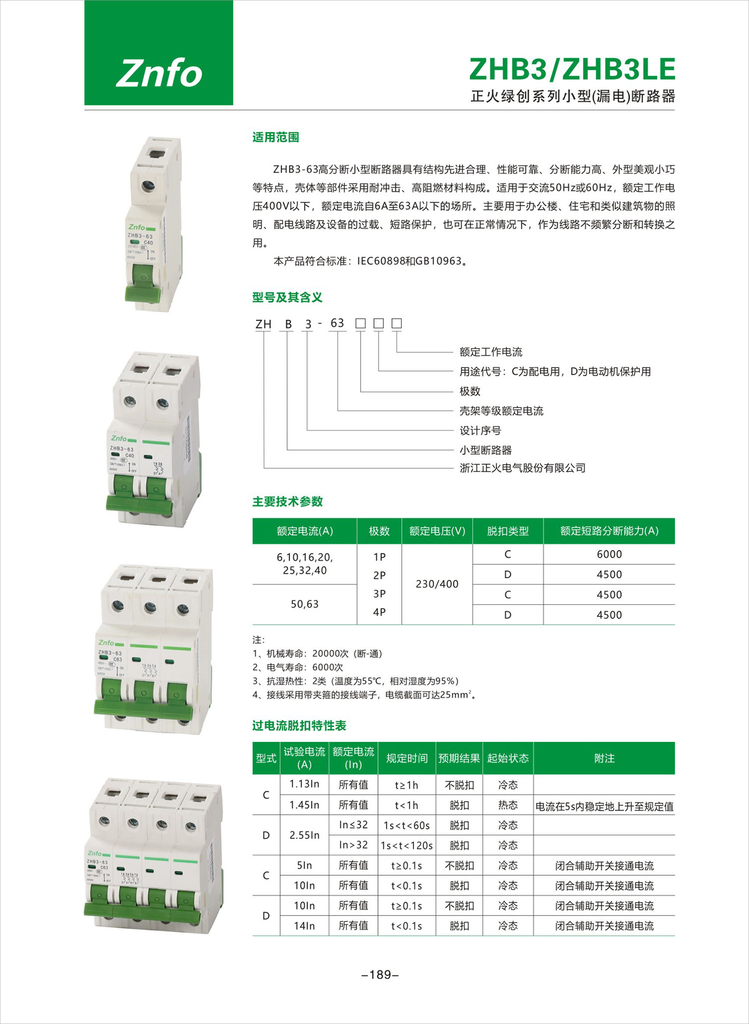 ZHB3/ZHB3LE系列小型(漏電)斷路器產(chǎn)品說明書